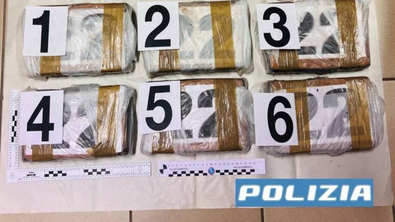 La droga, divisa in 6 panetti per un totale di 6,7 chili, era nascosta all’interno di una sbarra di ferro del cassone e ricoperta di una sostanza grassa al mentolo per sfuggire ai controlli, anche quelli effettuati con cani addestrati.