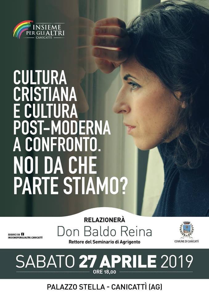 A relazionare sarà il rettore del Seminario di Agrigento, Don Baldo Reina. E’ un ulteriore incontro promosso quest’anno dall’ Associazione ” Insieme per gli altri ” di Canicattì , patrocinato dal Comune.