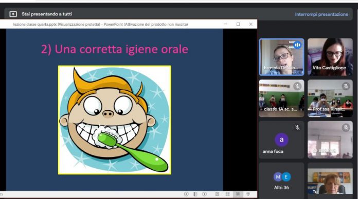 Le due giovani professioniste si sono alternate trattando in modo chiaro ed esauriente, anche con il supporto di slide, della struttura della bocca, della funzionalità dei denti, delle corrette pratiche di igiene orale e della gestione dei traumi dentari, con la finalità di sensibilizzare i ragazzi a corretti stili di vita per un loro futuro migliore. Hanno così coinvolto i numerosi alunni collegati che hanno ascoltato con vivo interesse intervenendo con opportune domande.