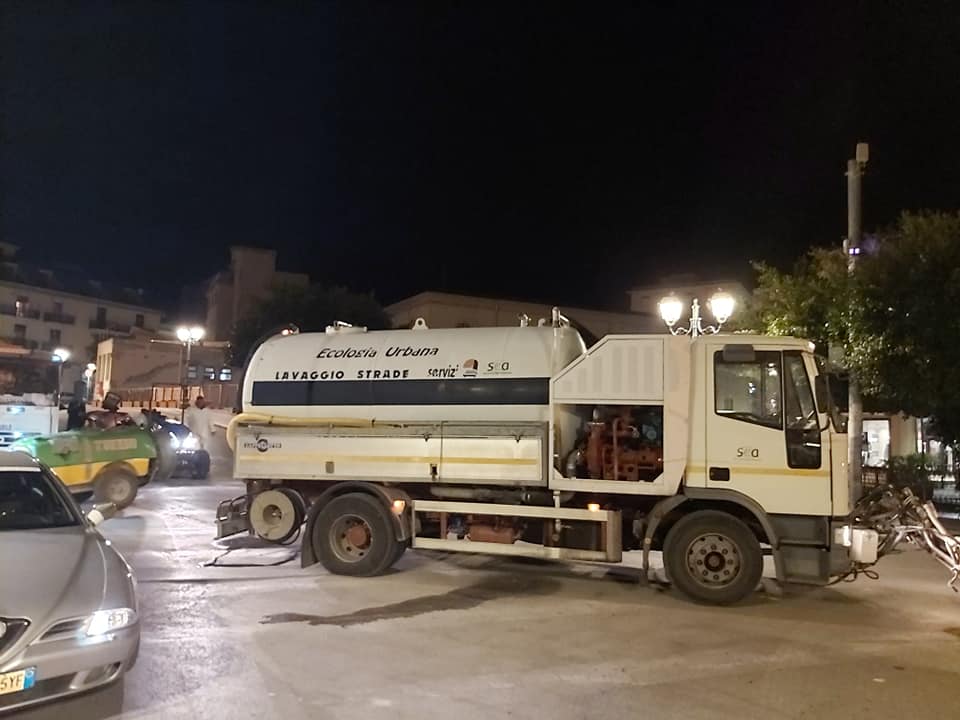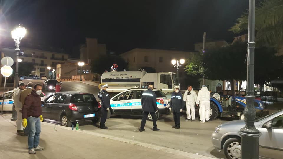E’ appena iniziato , in tutto il territorio comunale, un massiccio intervento di sanificazione delle vie cittadine, i mezzi sono già partiti da piazza San Diego per per spargere in tutto il territorio comunale un disinfettante a base di ipoclorito di sodio , sostanza base della comune candeggina.