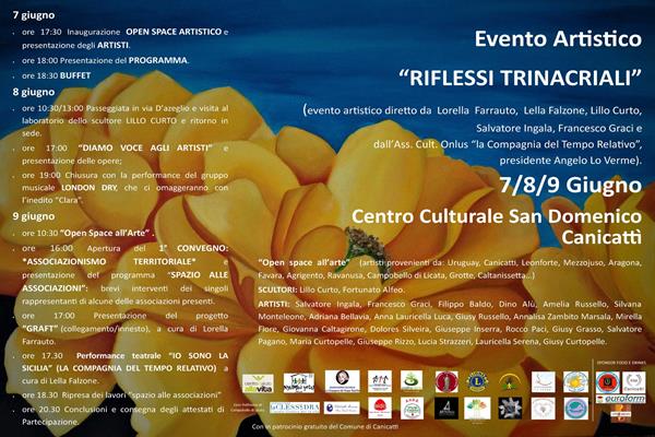All’evento saranno presenti artisti provenienti da Uruguay, Canicattì, Leonforte, Mezzojuso, Aragona, Favara, Agrigento, Ravanusa, Campobello di Licata, Grotte e Caltanissetta dando così un tono culturale di notevole spessore alla manifestazione canicattinese che terminerà dunque giorno 9 Giugno con un interessantissimo convengo sull’Associazionismo Territoriale.