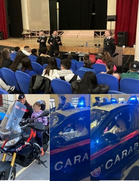 Successivamente, l’attenzione si è spostata sugli organi operativi e di primo intervento dei Carabinieri, rappresentati dai militari del Nucleo Radiomobile di Messina, intervenuti in quel contesto con un’autovettura utilizzata nei servizi di pattuglia, insieme a due unità di motociclisti che sono state messe a disposizione dei ragazzi al fine di permettere loro di poter toccare con mano e conoscere gli strumenti, l’equipaggiamento e i mezzi impiegati per lo svolgimento dell’attività di prevenzione e contrasto dei reati e degli altri comportamenti illeciti, sempre al servizio di chi ha bisogno di aiuto.