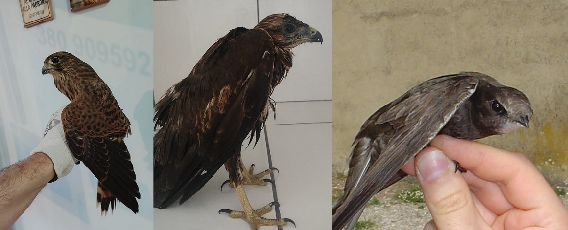 Foto: un Gheppio, una Poiana e un Rondone recentemente recuperati dai volontari WWF di Caltanissetta.