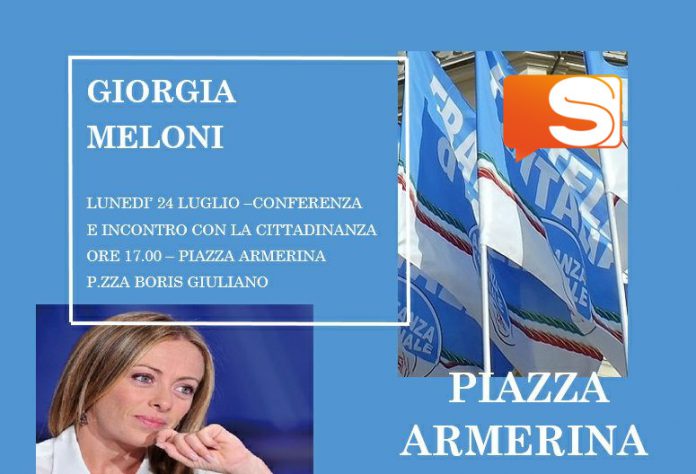 Giorgia Meloni a Piazza Armerina, lunedì 24 luglio 2017 alle 17.00 in piazza Boris Giuliano. La conferenza sarà aperta a tutta la cittadinanza, si parlerà del problema migranti. Un tema di drammatica e costante attualità, su cui la Meloni è tornata a pronunciarsi sostenendo sulla sua pagina Facebook come quella che stiamo subendo sia una “invasione senza fine”. Sempre via social, la leader di FdI ne documenta la tragica veridicità: “Migliaia di clandestini sbarcati negli ultimi due giorni. Nel frattempo il Governo e il Pd si adoperano per regalare la cittadinanza italiana a tutti grazie allo ius soli“. Quindi aggiunge: “La visione di Fratelli d’Italia è molto diversa: subito un blocco navale al largo della Libia per impedire ai barconi di partire, espulsione dei clandestini e concessione della cittadinanza italiana solo a chi ama l’Italia, dimostra di essersi integrato e di condividere la nostra cultura e le nostre leggi”.