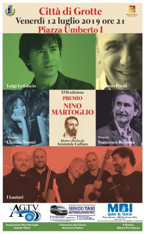 Si terrà venerdi 12 luglio in Piazza Umberto I, con inizio alle ore 21.00, la 17° edizione del Premio “Nino Martoglio” Città di Grotte, ideato e diretto da Aristotele Cuffaro.