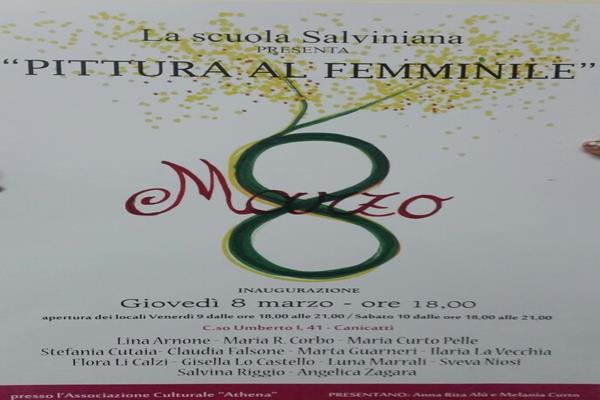 Giovedì 8 marzo, alle ore 18,00, in occasione della Festa della Donna, verrà inaugurata presso i locali dell’Associazione Athena in Corso Umberto I n.41 la mostra “PITTURA AL FEMMINILE”, organizzata dal Prof. Salvino Marrali e dalle sue allieve-artiste, le quali esporranno le loro opere, improntate sul tema della ricorrenza. Le artiste e i loro dipinti saranno presentati dalle Prof.sse Anna Rita Alù e Melania Curto. Sono previsti anche degli intermezzi musicali a cura delle allieve dell’associazione Gaspare Lo Nigro.
