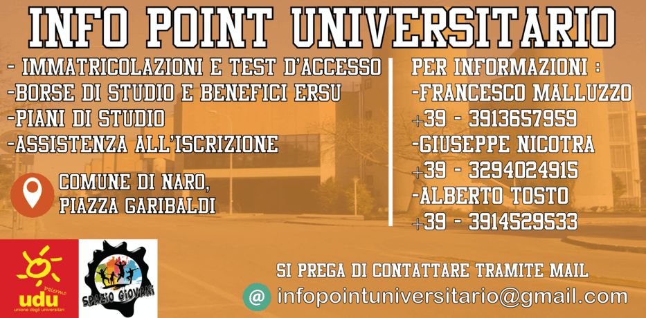 “Un servizio gratuito e di orientamento per i giovani naresi”, è questa la sintesi del progetto che vede coinvolte 3 associazioni, due universitarie ed una operante sul territorio che dei giovani naresi stanno attivando presso il comune di Naro. Si tratta di uno sportello informativo concernente l’orientamento universitario per tutti i giovani dell’hinterland. “Il mondo dell’Università risulta abbastanza complesso per i giovani che, per la prima volta, si interessano ad un’immatricolazione. Esistono tanti bandi e benefici ad esempio, che vengono erogati tramite l’ERSU in Sicilia e che spesso vengono ignorati per mancata conoscenza.” – dichiarano i tre organizzatori dell’iniziativa – “È nostra intenzione aiutare chiunque voglia iscriversi tramite consigli e assistenza di chi ha già percorso parte del suo cammino accademico”. Il servizio sarà attivo presso il Palazzo Civico del Comune di Naro, in piazza Garibaldi e riceverà tramite appuntamento concordato via mail o telefonicamente una o due volte a settimana. “Non solo atenei siciliani ma assistenza anche fuori dalla Sicilia, grazie alla confederalità dell’UDU che ha basi spalmate su tutto il territorio nazionale”. A supporto dell’iniziativa l’impegno di Spazio Giovani : associazione di promozione sociale operante sul territorio; la mail per contattare il servizio è [email protected] , in caso di mancata risposta si contatti telefonicamente uno dei tre responsabili. Francesco Malluzzo, UDU Palermo – Unione degli Universitari Alberto Tosto, Unikore Giuseppe Nicotra, associazione Spazio Giovani
