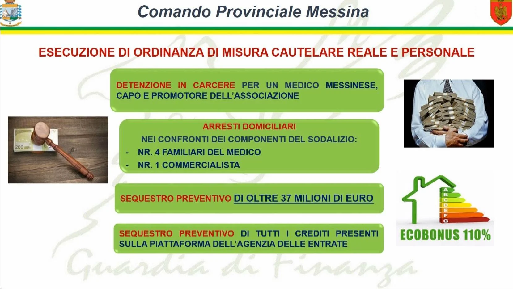 La Guardia di Finanza di Messina ha scoperto un’ampia truffa legata ai bonus edilizi, sequestrando oltre 37 milioni di euro e applicando un’ordinanza di custodia cautelare in carcere a un individuo, con altre cinque persone poste agli arresti domiciliari.